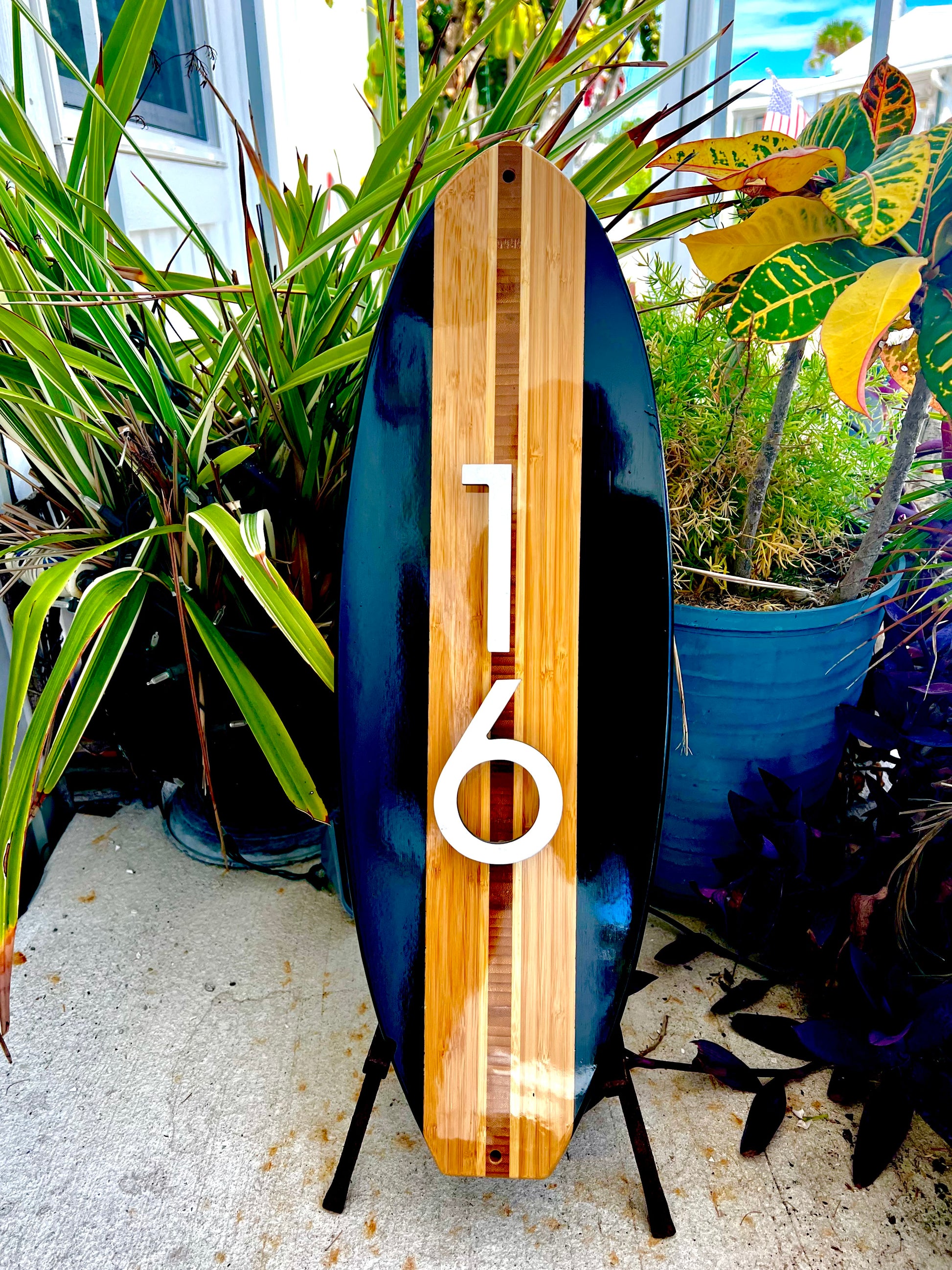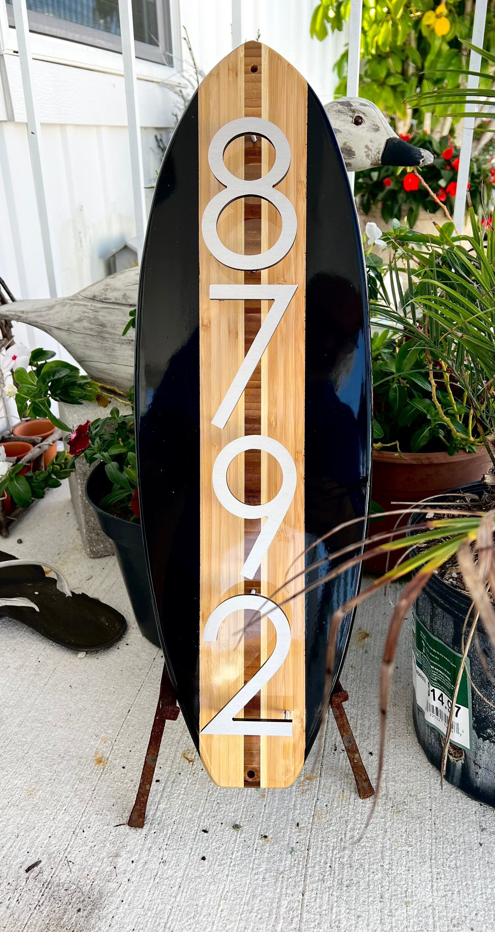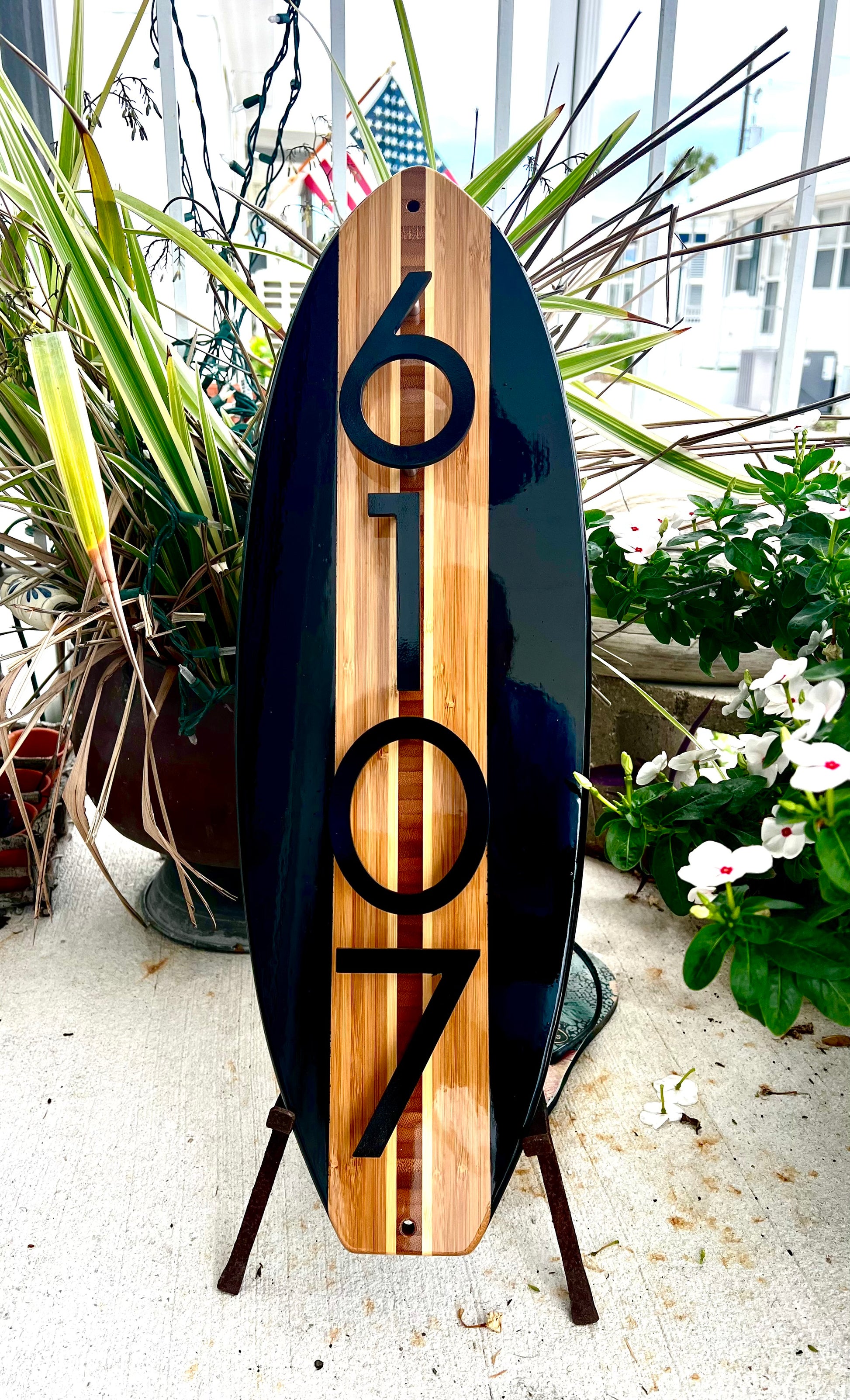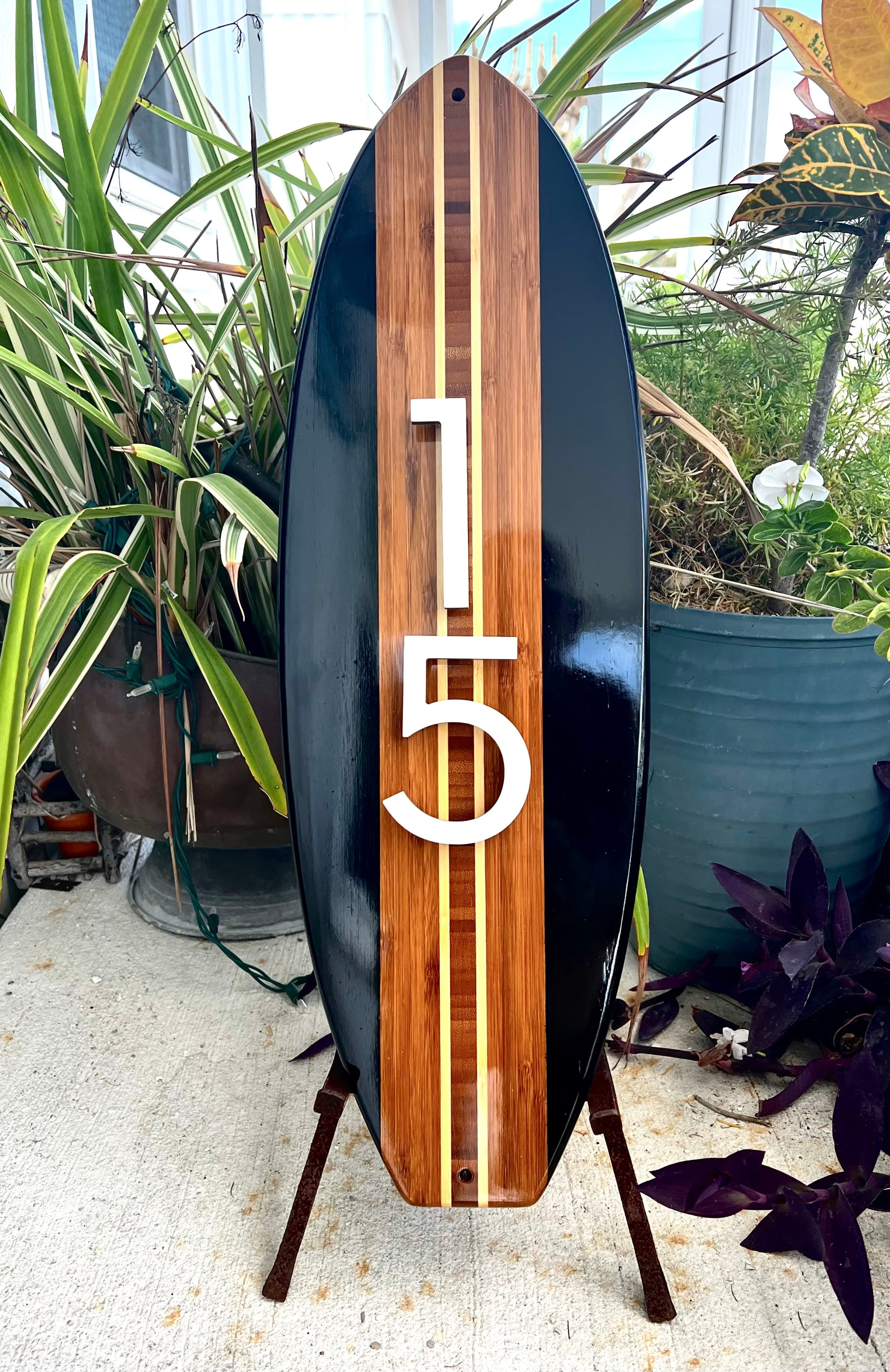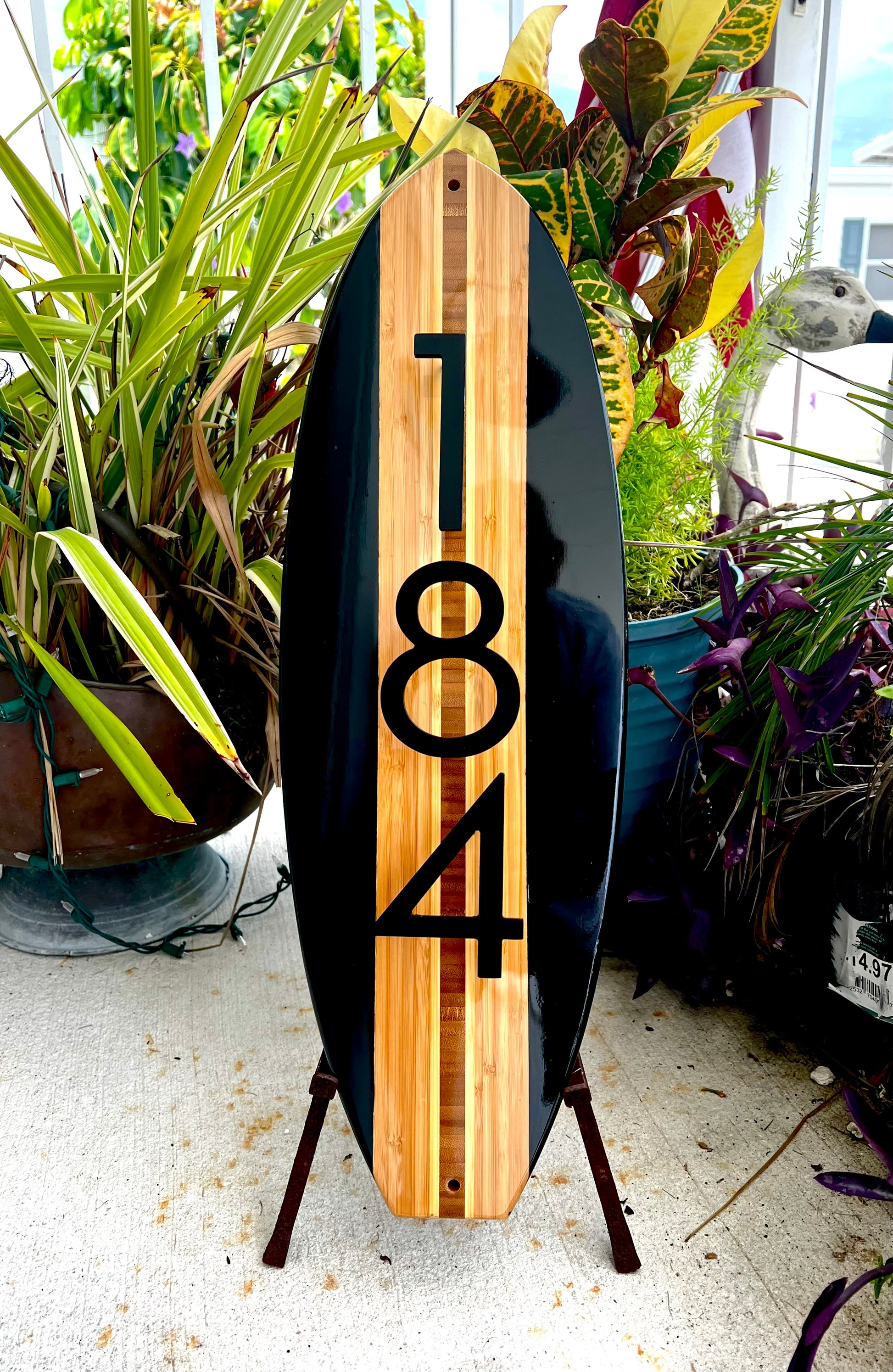 Address Number Sign Surfboard Coastal House Plaque in Black