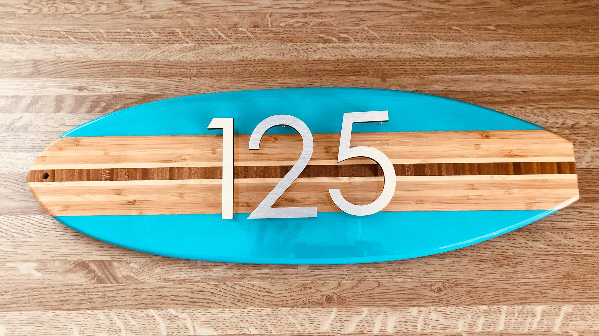 Surfboard House Number Sign , brushed aluminum numbers or letters stand off from